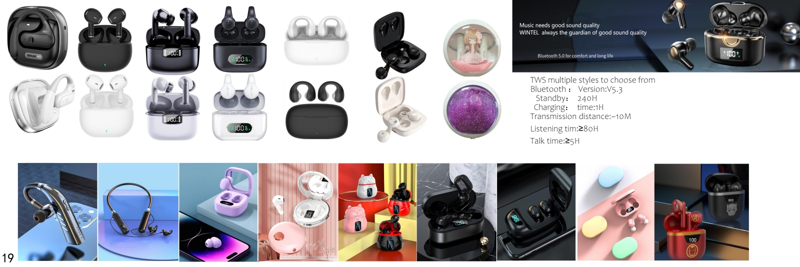 TWS Product No.:TWS Bluetooth headset Colour:Gray, blue, green, orange, blue... Custom color Charge mode:Type-c Material:ABS LOGO:custom Capacity:60mAh Usage scenario:sports and leisure Promotional gift:support Product feature:Sports style Bluetooth version:5.3 Support agreement:A2DP/AVRCP/HFP/HSP Stand-by time:240H Transmission distance:15M file format:e-mail contact Online Inquiry Details TWS dual host, mini and lightweight, easy to carry, touch design easy to operate, high-speed and stable transmission of good sound quality, housing personalized any color in patterns, promotional gifts, brand promotion, etc., let us know your budget, we have a lot of styles for you to choose, Related Products none